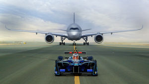 Das Kopf-an-Kopf-Rennen, das in einem weltweit ausgestrahlten Video veröffentlicht wurde, zeigte erstmals einen Wettkampf zwischen dem hochmodernen Airbus A350 und dem elektronischen Rennwagen der neuesten Generation der E-Serie. Kurz darauf folgte ein zweites spektakuläres Rennen mit einem B787 Dreamliner.