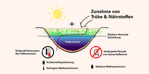 Aufgrund der starken thermischen Schichtung werden die tieferen Wasserlagen schlechter durchmischt und somit kaum noch "belüftet". Dies kann zu länger anhaltenden anoxischen Bedingungen führen, warnen die Wissenschaftler. Unter diesen Voraussetzungen setzen Fermentierungsprozesse in den Sedimenten verstärkt Methan frei. "Unter dem Strich nimmt also das Treibhausgaspotenzial von Seen mit der Erderwärmung wie erwartet zu. Dies hat aber weniger mit der Erwärmung direkt zu tun als mit zunehmender Sauerstoffarmut in den Tiefen dieser Seen", so Bartosiewicz.