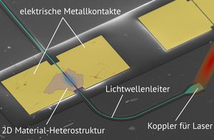 In 2D-Materialien, wie etwa Graphen, bewegen sich Elektronen nur in einer Ebene anstatt in drei Raumdimensionen. Dadurch ändern sich ihre Transporteigenschaften, etwa wenn eine elektrische Spannung angelegt wird, grundlegend. Während sich allerdings Graphen nur bedingt für optische Anwendungen eignet, sind Verbindungen aus Übergangsmetallen wie Molybdän oder Wolfram und Chalkogenen wie Schwefel oder Tellur (abgekürzt als TMDC bezeichnet) sehr lichtempfindlich und lassen sich zudem leicht mit Silizium-Lichtleitern kombinieren.