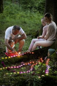 Die junge Frau hat den Berg geliebt. Und sie hat so viel Zeit wie möglich dort verbracht. Ein tragisches Unglück hat sie plötzlich aus dem Leben gerissen. Die Erschütterung der Familie und der vielen Freunde war unermesslich. Die Familie hat dann entschieden, sie dort - an ihrem Lieblingsberg - auf der Naturbestattungsfläche Paracelsus Wiese zu bestatten.Schon früh morgens haben sich der Lebensgefährte und die Schwester der Verstorbenen mit dem paxnatura-Förster auf der Paracelsus-Wiese getroffen. Der Förster hat das Grab mit dem Spaten ausgehoben, in dem später die Urne beigesetzt wurde. Besonders war die liebevolle Ausschmückung des Grabes durch die Schwester dort an den Wurzeln des Baumes. Lange hat es gedauert, bis die bunten Teelichter sternförmig so angeordnet waren, wie sie sich das vorgestellt hat. Aber das war gut so, denn es hat geholfen, in dieser Situation die Trauer ein bisschen besser zu verarbeiten.