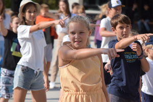 Mit einem "Flashmob der Hoffnung" starteten heute mehr als 100 Kinder am Campusplatz der Pädagogischen Hochschule in vier erlebnisreiche Tage. "Eins, zwei, drei, vier - odyn, dva, try, chotyry" - Choreograf Kostyantyn Panchenko gibt Kommandos in deutsch und ukrainisch. Der Flashmob soll ein tänzerisches Willkommen sein für Kids aus der Ukraine, eine "Freundschafsbezeugung, um Frieden und Freude zu geben", wie es Rektor Erwin Rauscher in seinen Grußworten ausdrückt. Mit dem Dancefloor-Klassiker "I like to move it, move it" wird das gemeinsame Tanzen ganz leicht.