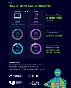 Das Dateiformat entscheidet: Unternehmen, die ihre Geschäftsberichte im HTML-Format veröffentlichen, erscheinen dreimal häufiger in ChatGPT-Antworten als solche, die auf PDFs setzen. Zudem führt eine HTML-Quelle zu faktisch korrekteren Aussagen der künstlichen Intelligenz (KI). Zu diesen und weiteren Schlüssen kommt die großangelegte Studie "AI optimized Reporting" der USTP – University of Applied Sciences St. Pölten, der HHL Leipzig Graduate School of Management und der Wiener Beratungsagentur nexxar. Sie liefert Unternehmen erstmals datenbasierte Hinweise darauf, wie sie ihre verifizierten Finanzdaten so aufbereiten, dass sie von dem KI-Sprachmodell ChatGPT als Quelle herangezogen werden.