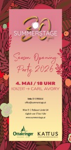 Zur Saisoneröffnung der Wiener Summerstage am 4. Mai um 18 Uhr lädt Inhaber und Veranstalter Rob Morton zu seinem Opening Event mit dem britischen Sänger Carl Avory ein. Dank der groovigen Soul-Arrangements ist gute Stimmung garantiert. Begleitet wird der gebürtige Engländer von Paul Temmel am Piano, Andy Erd an der E-Gitarre, Moritz Holy am E-Bass sowie Christian Ziegelwanger an den Drums.