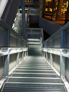 Richtig gruselig wird's, wenn durch einen Gebäudebrand der Strom ausfällt. Gerade in Bürogebäuden mit vielen Beschäftigten, Hotels, Schulen, ja in allen öffentlich zugänglichen Gebäuden ist ein richtig angeordnetes Notlicht wichtig. Damit wird die wichtigste Rettungsmassnahme, nämlich die Eigenrettung, oft erst möglich. Wenn aber die klare Sicht auf die Treppenstufen behindert wird durch Rauchschwaden, aber auch durch den eigenen Schlagschatten oder denen von anderen, kommt es leicht zu Treppenstürzen mit oft schwerwiegenden Folgen. Davor schützt ein Licht-Handlauf, der alle Stufen einer Treppe durchgängig ausleuchtet.