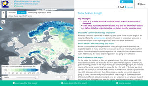 Der IMPACT2C Atlas ist in verschiedene Themenbereiche, sogenannte Stories gegliedert, u.a. Klima, Energie, Gesundheit, Tourismus, außereuropäische Hotspots. Innerhalb eines Themenbereichs sind weitere Inhalte (Topics) aufrufbar, z.B erwartete Änderungen im Wintertourismus für Österreich. Nikolaus Dürk und Roland Lehner, Geschäftsführer der X-Net Services GmbH, erklären: "Spannend ist, dass die Darstellung von unterschiedlichen Auswirkungen in mehreren Layern erfolgt. Benutzer können damit die Situation vor und nach einer 2°C Klimaerwärmung vergleichen."